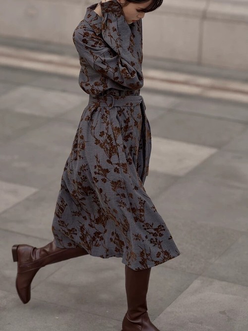 ガーリーになりがちな花柄のワンピースですが、落ち着いた色味で大人の女性でも使いやすいデザインに…
